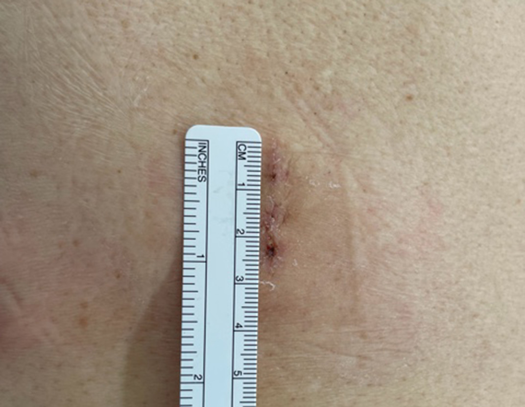 - お尻の上のところに5cmほどの傷をつくり、ジェネレーターを脂肪の中に設置します。